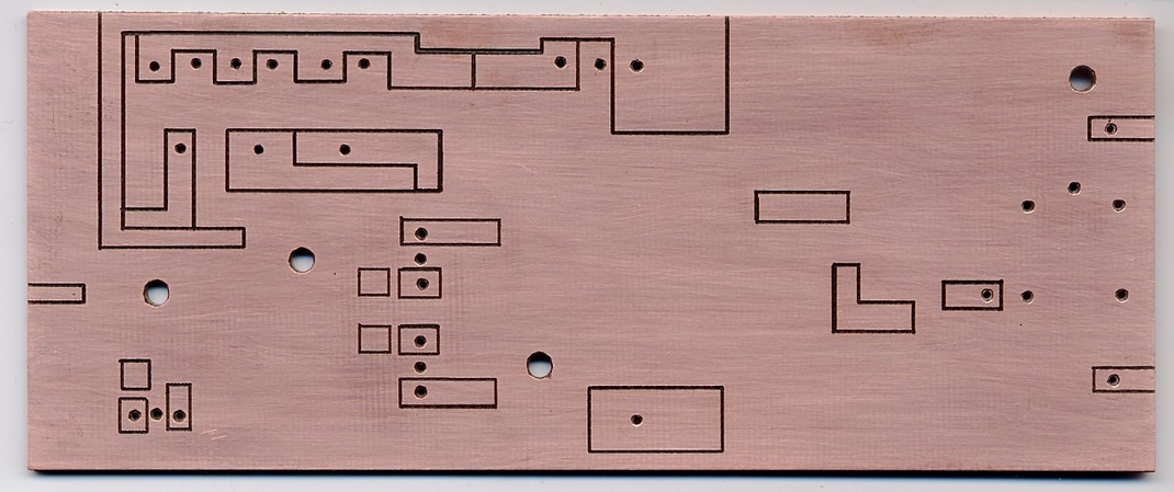 A titre d'exemple, voici le détail d'un circuit imprimé (PA 15W) gravé avec une micro-fraiseuse à commande manuelle.
