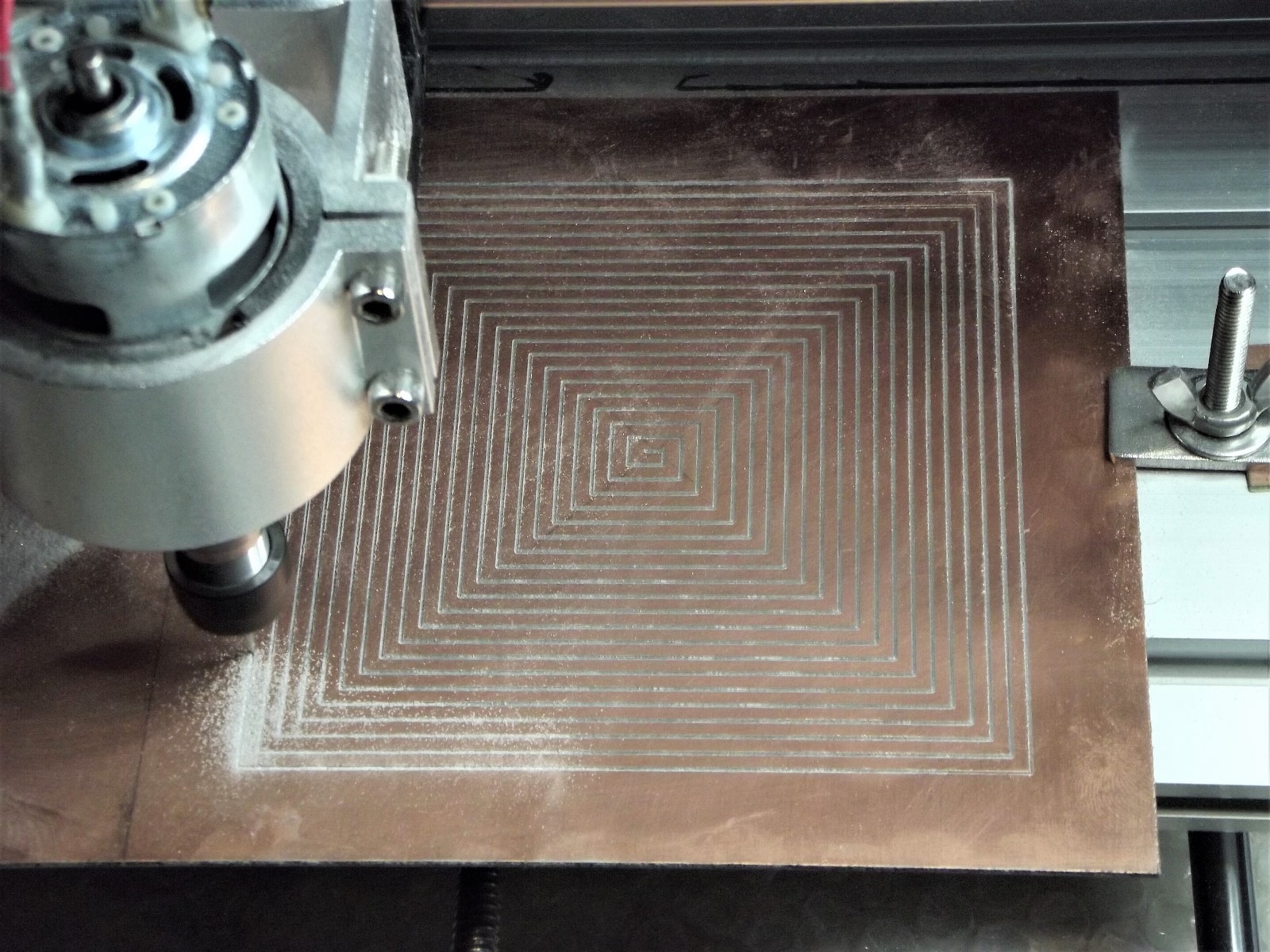 Lors de la prochaine gravure, il suffira simplement de fixer une plaque d'époxy cuivrée sur la table de fraisage, et de lancer le programme sauvegardé pour obtenir une exécution totalement automatique du gravage.